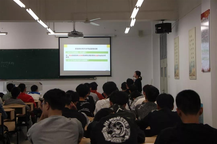 (电气电子工程系通讯员 余梦媛 张芳芳)10月17日下午,电气电子工程系在思行楼414教室举行了“我的生涯选择 ——专升本”专题讲座。本次讲座邀请招生就业处郑晓丹老师为有意向“专升本”学生开堂讲座。