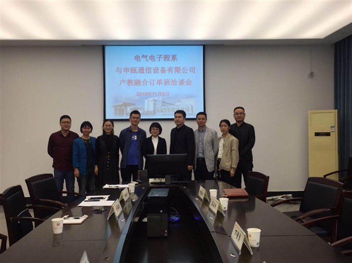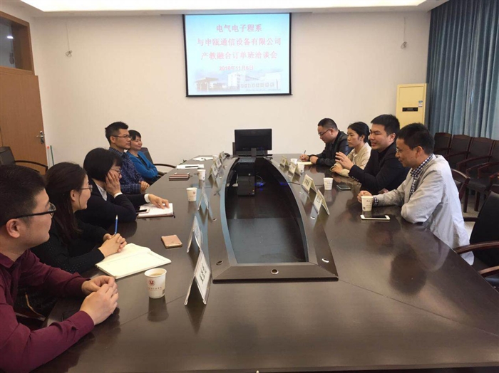 (电气电子工程系通讯员 丁阳华)11月6日下午,申瓯通信设备有限公司副总经理万谦勇一行4人来访电气电子工程系,就开展产教融合订单班进行洽谈。