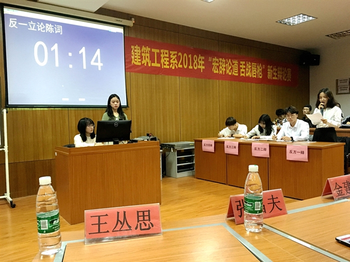(建筑工程系通讯员 王丛思)11月22日,建筑工程系在力行楼403教室举办2018年“宏辞论道 舌战唇枪”新生辩论赛决赛。