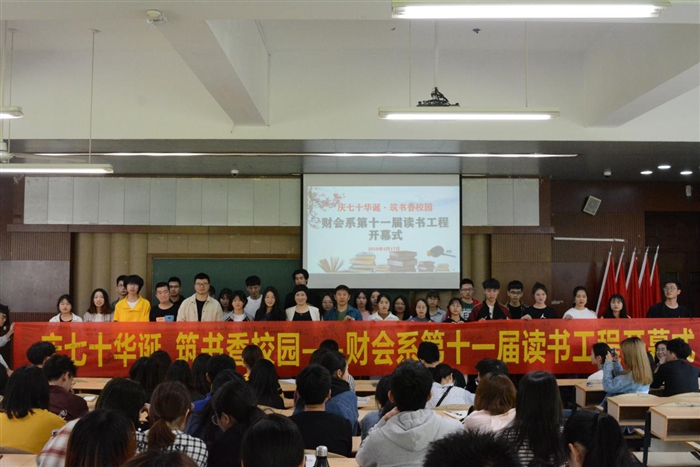 本网讯(财会系通讯员 李雪)为庆祝新中国成立70周年和迎接4·23“世界读书日”,4月17日,以“庆七十华诞,筑书香校园”为主题的财会系第十一届读书工程开幕式在崇学楼201举行。
