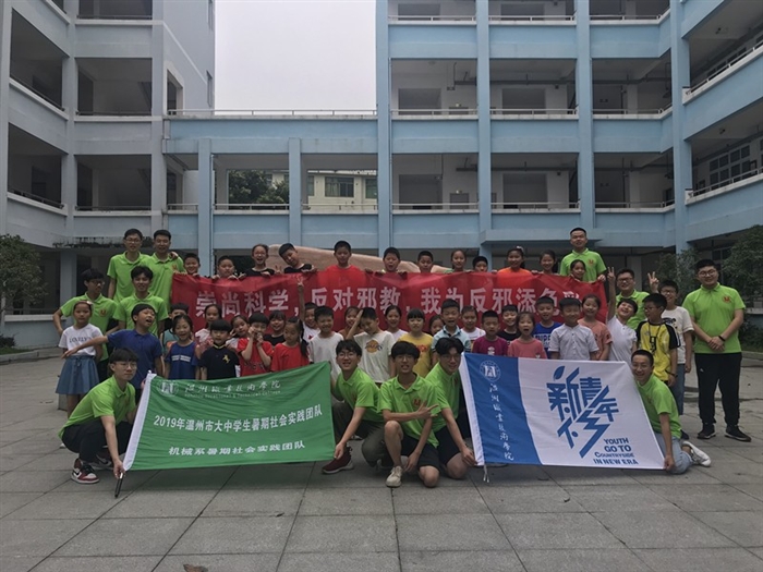 反邪宣传不仅在街头和文化礼堂,还在孩子们的暑期课堂上。 “我们的队员主要来自机械工程系,我们就想结合我们的所学,用孩子们最喜欢的方式玩出科学,爱上科学,达到我们崇尚科学的初衷。”实践队队员石梁说。
