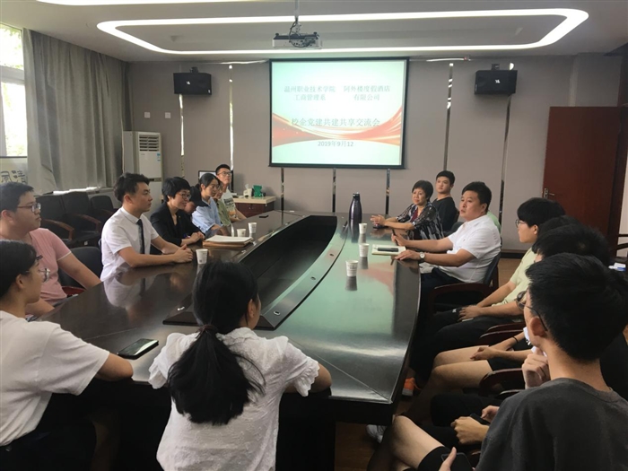 本网讯 (工商管理系通讯员 张婷婷)9月12日下午,温职院工商管理系与阿外楼度假酒店有限公司校企党建共建共享交流会于善学楼312举行。会议由工商管理系党总支副书记马德龙主持,酒店行政副总朱琳出席了会议。