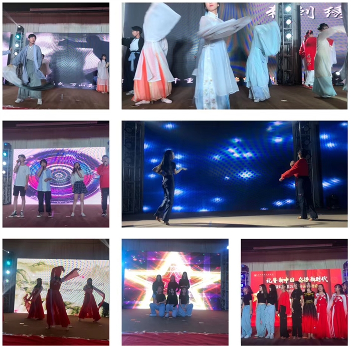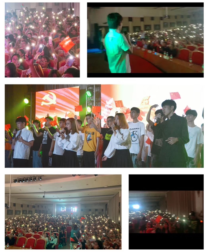 忆往昔,望未来。晚会中途播放的一段2019级新生班主任对大一莘莘学子的寄语视频让小萌新们很感动。接着,班主任们更为新生送上一段声情并茂的朗诵,博得学子们阵阵掌声与欢呼。小品《四大才子》和光影剧《在光影里穿梭》让同学们捧腹大笑之余更在光影的一幕幕片段中回望年少的自己。晚会尾声,一首《我爱你中国》表达出全体师生对祖国的热爱之情,更为祖国今日的繁荣昌盛倍感自豪。