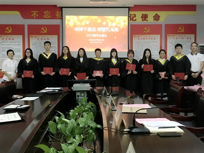本网讯 (建筑工程系通讯员 王丛思) 祝福、颁奖、感恩、献花……7月10日下午,建筑工程系在敏行楼208会议室举行2020届 “浓缩版”毕业典礼,演绎着不缩水的师生情。系党总支书记金建孟主持典礼。