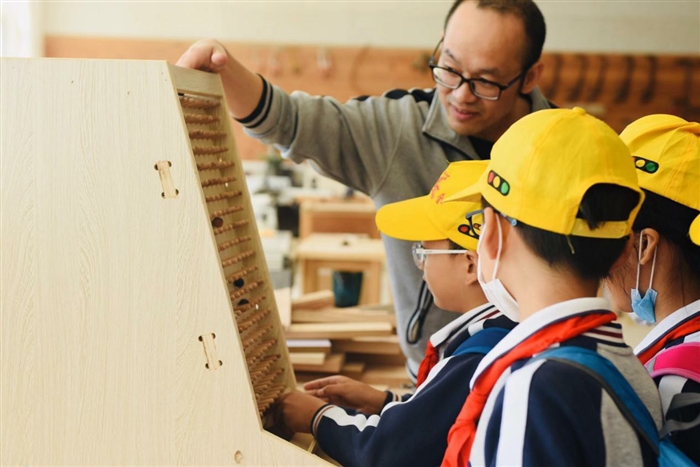 设创学院开放了所有专业实训教室,供小朋友参观体验。在产品设计工作坊,专业老师介绍了产品的设计理念、加工制作等专业知识和相关流程。小朋友们对各种设计新颖的艺术产品表现出浓厚的兴趣,开始了现场制作。在服装表演劳动实践基地,服装表演专业的志愿者讲解专业模特的基本素质,并展示专业的模特秀。小朋友们看完后迫不及待地化身“小模特”,在T台上轮番上演“模仿秀”,活动现场回荡着孩子们的欢声笑语。在家具设计与制造专业劳动实践基地,小朋友们参观各类创意家具,观看家具设计与制作的视频,同时体验了家具设计师职业。