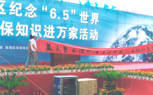 此次活动在瓯海区府的大力支持下举办的,以“绿色进万家”为主题。我院积极响应号召,组建了绿色志愿者服务队,为此次活动作出积极的贡献。瓯海区府举办隆重的开幕仪式,在开幕式上,我院三名志愿者代表上台领授环保大旗,他们洋溢着青春的笑容,展现了志愿者的风采。志愿者代表、院书法协会会长庞凯同学还在现场展示了他们的环保宣传书法作品,呼吁大家保护环境,营建绿色家园。