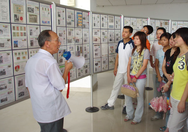 李方华老人亲自到邮展现场为前来观看的学子进行讲解