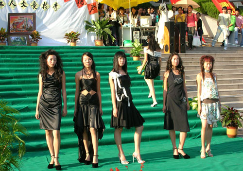 10月19日,轻工学院率先摆出“秀”场向全院师生展示轻工的专业特色。高雅的模特表演展示了该系同学设计的服装和鞋样作品。该院团学组织还把平时室内写生课堂搬到户外,露天进行静物写生、书法表演,现场作“秀”,让人流连。