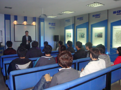 在申瓯公司办公室主任万谦勇的引导下,电气系师生先后参观了申瓯公司的产品展示厅、产品研发中心以及SMT车间。随后,电气系教工党员与企业部分党员进行了“如何共同培养人才”的研讨会,会上就“教工党员如何给企业技术人员做技术培训、企业职业指导师如何培育学生职业素质”等问题进行了深刻探讨。企业党建导师万谦勇结合企业实际,为学生入党积极分子上了一堂职业生涯指导课。
