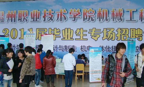 为提高毕业生就业质量,12月14日,温州职业技术学院机械工程系在温职院图书馆大厅举办了2011届毕业生专场招聘会。招聘会当天虽然天气寒冷,但会场内气氛却异常火爆热烈,100家用人单位、近1100名毕业生共聚会场。