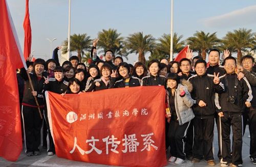 清晨,2011年的第一道曙光照耀大地,作为温州新年伊始的第一场重要活动,以“生态健身 从我做起”为主题的“中国体彩杯”元旦万人健身跑活动在温州世纪广场拉开帷幕。一大早,我院人文传播系40多位“运动健儿们”络绎不绝地来到世纪南广场,以集体健身跑的方式,迎接新一年的到来。