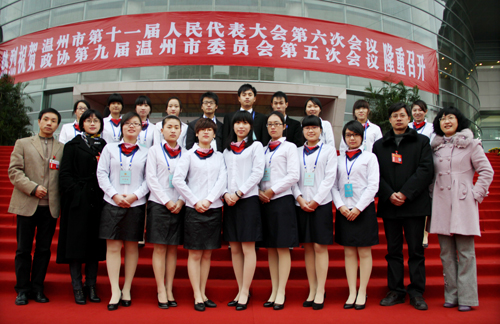 2011年1月7日,我院人文传播系派出文秘、摄影两支小分队共21人前往温州市“两会”现场从事会议服务工作。
