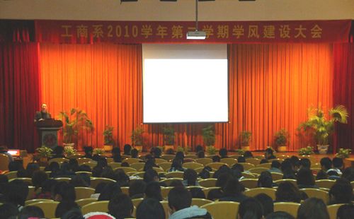 为进一步推进学风建设,工商系于2月24日举行了2010学年第二学期学风建设大会。全体2010级学生和2009级学生干部、学生党员参加了这次大会。