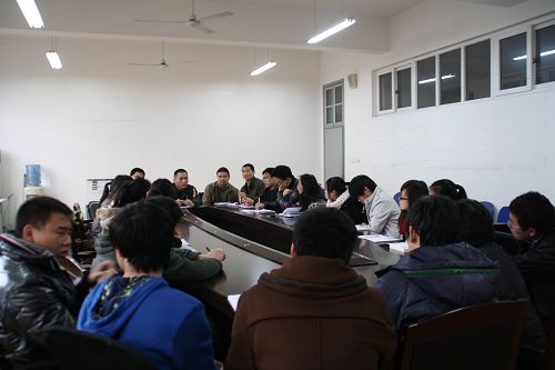 申屠新飞主任代表系领导班子和老师感谢同学们对系里工作的支持,同时对大家所提的问题作了分析和解释,表示将积极向教务处争取增加机房开放时间,他也希望各小组组长起带头作用,像“先富带后富”一样帮助一些专业知识较薄弱的同学,增强团队意识。经讨论,系里决定延迟第一论岗位轮换的时间。最后,叶吉波书记重申了纪律问题,要求08级在校毕业设计的学生,要严格要求自己,遵守学校的各项制度。
