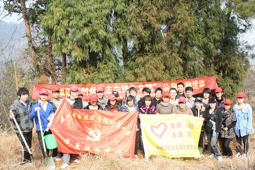为积极响应温州市人民政府号召,在第三十三个植树节到来之际,温州职业技术学院计算机系团学组织二十余名干事与温州五四义工团相聚在永嘉上塘。开展以“追求绿色时尚,走向绿色文明”为主题的大型爱绿护绿植树造林活动。