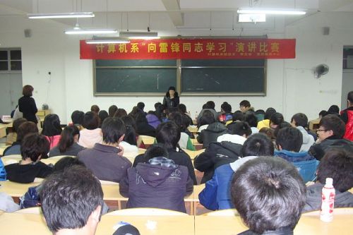为响应毛主席号召,深入学习与弘扬雷锋精神,计算机系于3月10日在我院2号楼201教室举办了以“追寻雷锋足迹,弘扬民族精神”为主题的演讲比赛。系辅导员、团学组织负责人及全系200多人参加了本次演讲赛。