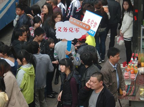 近日,在温州新南站和火车站等公交站点附近,一群头戴志愿者红帽,手举着“义务兑零”牌子的大学生们引起了路人的关注。来自温州职业技术学院机械工程系的志愿者们利用双休日的休息时间走上街头,为车站内等候公交的市民义务兑换零钱,方便市民的出行。
