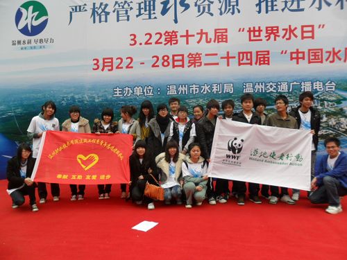 为了提高居民的节水意识,3月22日,建工系和财会系的青年志愿者们参与由温州市水利局、温州市交通广播电台联合主办的2011年世界水日宣传活动。