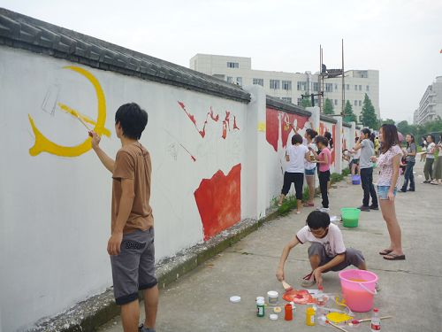 6月15日,轻工系举办“为党庆生、涂鸦献礼”现场涂鸦大赛,喜迎建党九十周年。此次涂鸦大赛以班级为单位,各自组建团队参赛,并将学院操场南面在建实训大楼围墙作为比赛舞台。