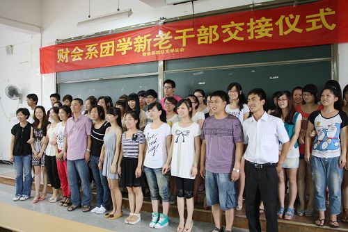 9月6日中午,财会系团学新老干部交接仪式于一号教学楼101教室顺利召开。党总支书记叶吉波、学工办五位老师出席了此次交接仪式。