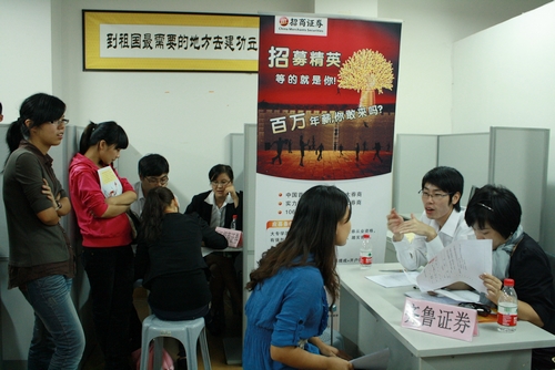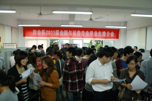 10月20日,由财会系就业管理服务中心举办的“金融与证券专业毕业生顶岗实习推介会”在行政楼招聘大厅成功举行。财会系党总支书记叶吉波、系主任申屠新飞亲自“坐镇”推介会,招生就业处处长谷智静,院组织部副部长、离退休处处长张小加,金融与证券专业负责人王赛芝,系辅导员王丹霞、杨晶晶、张慧慧及其它相关部门负责人亲临推介会现场。温州鹿城农村合作银行、中国银河证券股份有限公司、浙商证券有限公司等13家知名企事业单位参加了此次推介会。