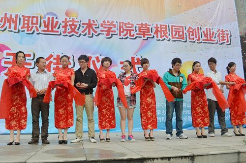 11月5日,我院第十四届草根园创业街活动在学院体育馆前隆重开幕。此次活动由院团委主办、工商管理系承办、温州鹏润国美电器有限公司协办。学院团委副书记吴冰,温州鹏润国美电器有限公司嘉宾朱经理出席了开街仪式。