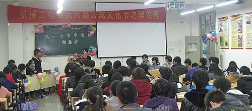 为了培养机械工程系学生团结合作和坚韧不拔的精神,加强相互之间的交流,2011年12月7号晚,由机械系团学组织宿管会举办的机械系第六届公寓文化节辩论赛在实训3号楼414教室举行。机械系各专业的学生代表参加了本次比赛。