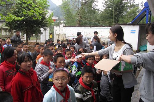 午餐时,看到小朋友们简单的饭菜,大家都很心酸。中午12点本次活动正式拉开序幕,同学们首先给小朋友们演唱了精心排练的曲目“爱,因为在心中”,接着与小朋友们进行了拔河游戏,还派发了礼物给大家,并给全校的小朋友们赠送牛奶。小朋友们却都拿在手中,舍不得喝。随后,同学们与27个小朋友进行了一对一的结对帮扶,大家与结对小朋友手牵手亲切交谈,鼓励他们要好好学习、天天向上,并与他们交换了联系方式。