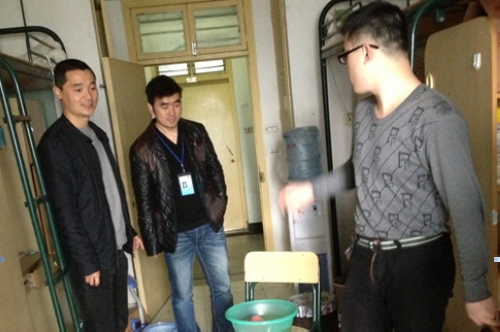 学生处相关人员走访学生公寓检查新学期准备工作