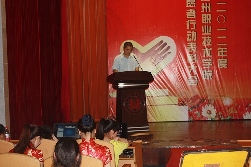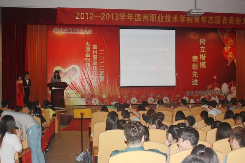 为了大力弘扬“奉献、友爱、互助、进步”的志愿精神,提升大学生素质。5月15日晚,学院2012年度青年志愿者表彰大会在信息楼报告厅隆重举行。学生处处长叶吉波、团委全体工作人员、院系两级志愿组织指导教师以及学生代表参加了颁奖仪式。