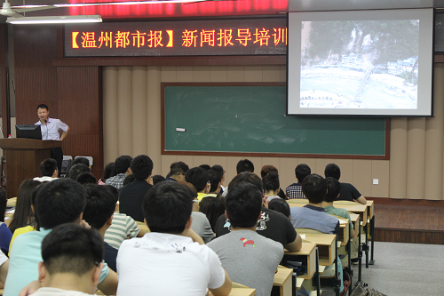 5月27日晚,青马学院第四期学员新闻报道专题培训会在崇学楼101会议室成功举办,《温州都市报》快速访问部主任卢俊敏为我院青马学院第四期学员及团学组织宣传工作人员带来了主题为《从海湾战争到芦山地震,媒体如何应对重大突发事件》的精彩讲座。