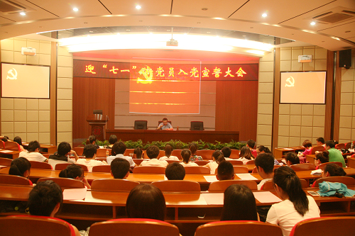 为了纪念中国共产党建党92周年,学院于6月24日在正德楼一楼罗山厅隆重举行“迎七一”新党员入党宣誓大会。学院党委委员、组织部部长徐利群、各系学生党支部书记和97名新党员参加了大会。会议由组织部部长徐利群主持。