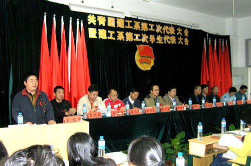大会在庄严的国歌声中隆重开幕,建工系书记李达聪致开幕词。大会听取并审议通过了建工系团总支关于《紧跟时代 创特色 共谋发展 同进步》和学生分会《跟时代 亮特色 同携手 创示范》的工作报告,选举产生了建工系新一届共青团和学生会委员。