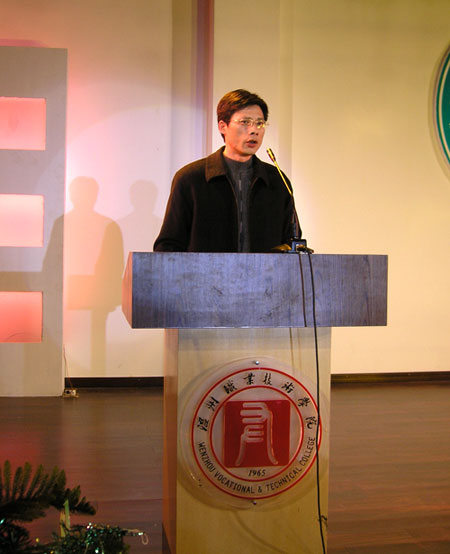 今天,我们欢聚一堂举办一年一度的元旦文艺汇演,以歌舞的形式庆祝新年的到来。即将过去的2006年,是“十一五”的开局之年,也是我院发展历史中不平凡的一年,我们顺利通过了全国高职高专人才培养工作的优秀评估。另外,我们的各项工作都取得了可喜的成绩—学院被授予“浙江省治安安全示范单位”、“全国高职高专数字图书馆示范单位”、“全国高职高专优秀学报一等奖”,在全国高校的教育科研论文排序中我院位列第五。我院的师生还获得了很多的奖项,如徐学慧老师成为温州市首位国家级乒乓球裁判,黄云碧老师在全国电子商务总决赛中获得银奖,周朝霞老师的《公共关系》课入选国家精品课程,束孝宇、张得佳老师的教学课件获得全国多媒体课件大赛的高职组三等奖,郑笑容、李井平老师在浙江省十三届运动会上获得大众六人健美操金牌,王王忠、潘敬明、毛仙茅同学在全国数学建模竞赛中荣获一等奖,还有,我们的篮球健儿在温州市首届大学生运动会上六战全胜夺得冠军。总之,在2006年,我们一步一个脚印地走过来了,我们取得了不斐的业绩。