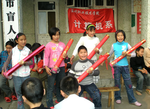 盲校的小朋友们为大学生朋友们表演节目