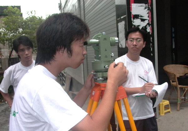 我院文成实践队农村建设规划团经过几日来的精心勘察,测量出西坑镇的控制点的高程、方位角、距离等数据,这些数据将为制作西坑镇地图奠定基础。这支服务团全部由我院建筑工程系同学组成。他们充分运用专业知识,为西坑镇规划“蓝图”,真正把理论知识运用于实践,在实践中增长了才干。