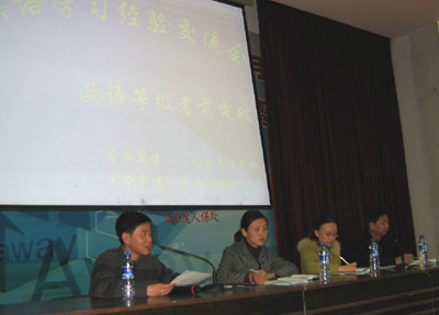 首先,陈永丽老师向大家详细介绍了有关英语等级考试的变化和最新规定。接着刚从英国留学回来的季绍斌副教授向大家着重介绍了单词记忆过程中的记忆联想法和如何做好的作文的开头、结尾及润色两个部分的内容。另外,季老师讲到了如何让自己以最好的心态去迎接考试,他的讲解生动风趣,赢得了学生的好评。最后,各位老师还传授英语等级考试中各类题型的解答技巧,并回答了同学们的提问。