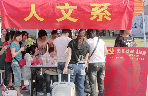 9月6日,人文传播系迎来了五湖四海的2009届新生。为更好地向全体新生及家长表达人文学子的欢迎之情,展现人文关怀,人文传播系志愿者队伍,身贴人文标识,用他们的爱心和耐心,以亲切的微笑带领新生完成入学手续,使他们切身感受到人文大家庭的温暖之情和互助互爱的良好风气。各具特色的迎新亮点层出不穷,为学院2009年迎新工作增添了一道道亮丽的风景。