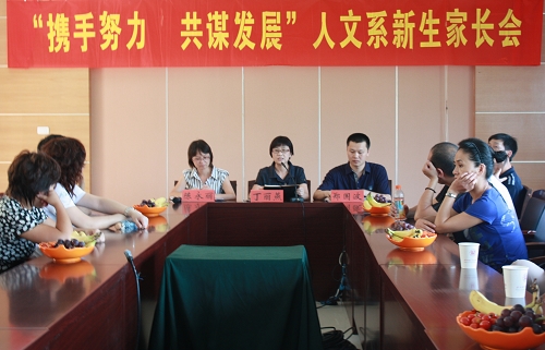 为使家长更好地了解人文传播系的相关情况,9月6日下午,人文传播系特召开“携手努力、共谋发展”新生家长会。新生家长代表参加了会议,人文传播系主任丁丽燕、党总支书记郑国波、副主任陈永丽以及新生家长们出席了此次活动。丁丽燕主任向家长们就师资、校风学风、就业率等问题详细介绍了人文传播系的特色情况,并从中分析了大学与中学的不同,建议家长调整好教育方法,让家长在了解系部的同时能够积极配合系针对学生的各类教育教学,实现锻炼学生实践能力与素质提高的目的。郑国波书记从学生心理健康方面作了细致的讲解,向家长们分析了大学生极易出现的各类问题,并希望家长们能够主动与学校保持联系,实现信息的沟通,形成良好的互动。