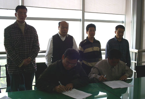 4月18日下午,在我院四方后勤有限公司会议室里举行了四方公司与泰顺县下洪乡溪美村无公害蔬菜购销合同签订仪式。学院副院长兰玉景,四方公司副总经理李建中、诸葛敬与下洪乡党支部书记、乡长钟敦德等出席了会议。