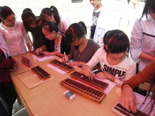 中午,在1号楼101教室,财会系主任李洁发表了讲话:“做为财会系的一位成员,在你们身上我希望看到会计的素质,你们应该有着良好的职业精神和技能,并将这种良好地素质风貌继续保持下去,现在作为大一新生应该尽快树立目标,在学校好好掌握知识和技能,将来在社会上,让你们的老板看到从温州职业技术学院财会系出来的学子是好样的,要谨记一句话,现在正是你们创造资本的时候。”简单的几句话让在座的学子们心潮澎湃。接着,技能展示活动正式启动,数码字、手工登账、点钞、珠算等展示人员依次排开就座,分别开始进行手头上的工作。大一新生以班级为单位有序地进行了参观,当他们看到自己刚发到手的算盘、假钞还并不太熟悉的时候,大二大三的学姐、学长们却已经这么运用自如了,不禁感慨,随即就在活动期中对自己非常感兴趣或是不太熟的技能特别进行了询问,表现出极高的积极性。对此,活动期间工作人员进行了有关的问卷调查,绝大多数同学认为该项活动十分有意义,它极大的增强了同学们对会计学科的热情,并希望以后能多举办一些类似的专业性活动。近两个多小时后,活动圆满结束了,同学们纷纷在活动的横幅上签下了自己的名字。
