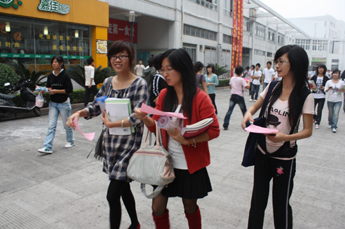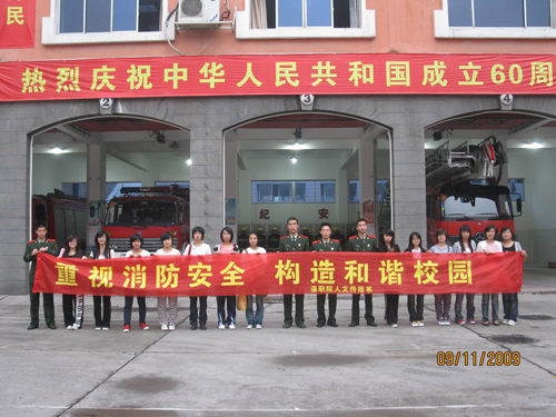 2009年11月9日是国际消防日。为提高温州职业技术学院同学的消防安全意识,消除校园消防安全隐患,人文传播系文秘专业0801班和0901班向全院同学发出倡议:“重视消防安全,构建和谐校园”,鼓励同学们养成良好的用电、用水习惯,反对使用电夹板,热得快等危险物品。