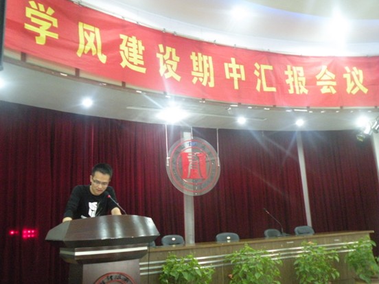 院学生处在行政楼多功能厅召开期中学风建设交流会议。8位辅导员代表走上讲台与全院思政工作者交流本系学风建设情况。
