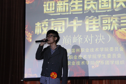 由共青团温州职业技术学院委员会主办、院学生会承办的第九届以“迎新生,庆国庆”为主题的校园十佳歌手决赛于2009年11月17日晚18点,在信息楼报告厅隆重举行。