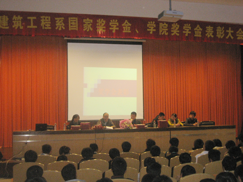 为了响应“让学习成为一种风尚”的学风建设号召,11月18日晚,建工系国家奖学金、学院奖学金表彰大会在信息楼报告厅召开。建工系党总支李达聪书记、系主任薛朝晖、辅导员及班主任等悉数到场。