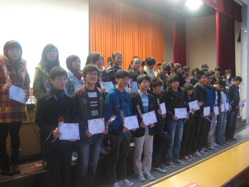 颁奖仪式上,每位学子都为获奖者送上了最热烈的掌声。此后还认真听取了国家奖学金的获奖者-郭栋和成绩突出的刘佳佳等同学的演讲。