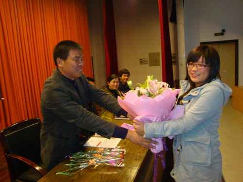 系主任薛朝辉为本次表彰会致开幕词,他和同学们谈起了怎么样正确地学习,并呼吁同学们积极响应我院“让学习成为一种风尚”这一活动。紧接着,李达聪书记宣读了奖学金获得者的名单,并着重介绍了国家奖学金的获得者—郭栋同学,号召在场的每位同学都向郭栋学习。