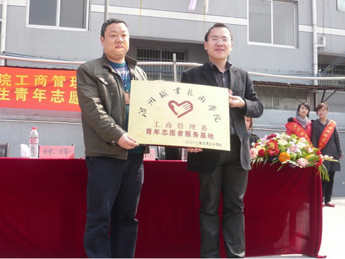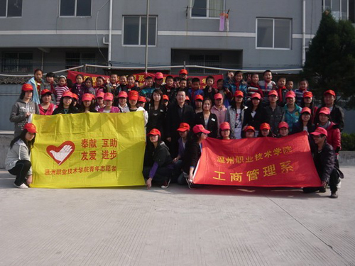 3月26日中午,我院工商系志愿者们沐浴着阳光,携手去温州南白象新生小学参加“温州职业技术学院工商管理系大学生青年志愿者服务基地授牌仪式”。