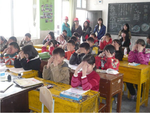此次出行的第一项议程即是签约仪式。新生小学校长林锋与我院工商系学生党支部书记林祯乐老师,在全校师生及所有志愿者面前,进行了庄重的签订仪式。第二项议程是宣扬雷锋精神,这次活动志愿者分成两队,选取了两个班级进行活动。在四年(1)班进行的主要是快乐课堂的主题。志愿者们带领同学们打着节奏,合唱着《ABC字母歌》和《小螺号》。又教读英语单词,还给孩子们猜脑筋急转弯,灵活转动他们的思维。更有志愿者陈晓芬上去教孩子们英文歌,快乐浮现在他们的脸上。另一边是四年(2)班,志愿者先带同学们到旷地上进行丢手绢,老鹰捉小鸡等游戏,孩子们玩的火热,兴奋之余又分组继续卫生大扫除竞赛活动,最快最干净组就可赢得奖品。他们笑声不止,积极寻找旷地上的垃圾除干净。回到教室,倪红发同学走上讲台担任教师的角色,让孩子们讲述“我的梦想”。