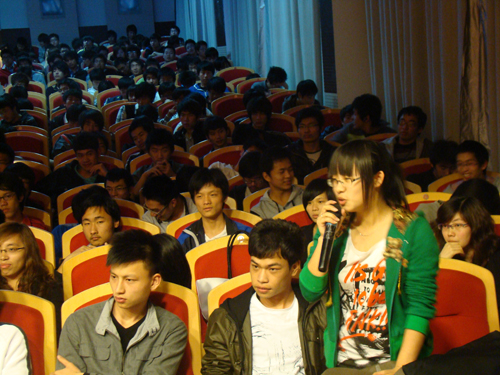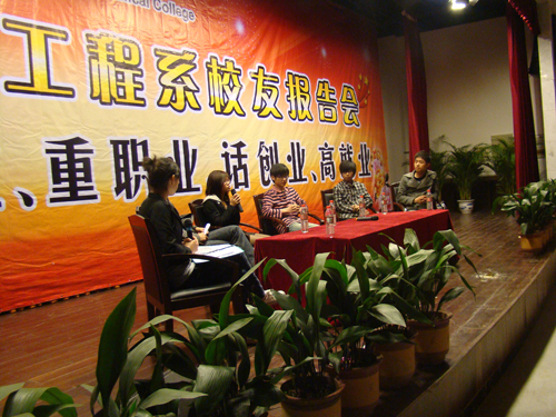在交谈中,5位校友都谈及了学好专业知识,重视职业规划的重要性,孙策说:“树立短期目标,不断学习,积累经验;从自己做起,学好专业,掌握技能,才能适应将来社会需要。” 林祖表在回答关于创业应该具备哪些条件和品质这一问题时认为,创业需要人脉资源、资金、个人才气,刚迈出校门的大学生应该量力而行,正确地认清自己。毛益则在就业与择业的问题上畅谈了自己的观点,她强调学生应该重视对自身职业素质的培养,提高就业质量,才能真正找到一份适合自己的工作。最后,他们寄语在坐的学弟学妹们要有自己的职业规划和目标、要学会人与人之间的交际语言、要努力学好英语、要有自信心让自己青春的生命放射光芒!